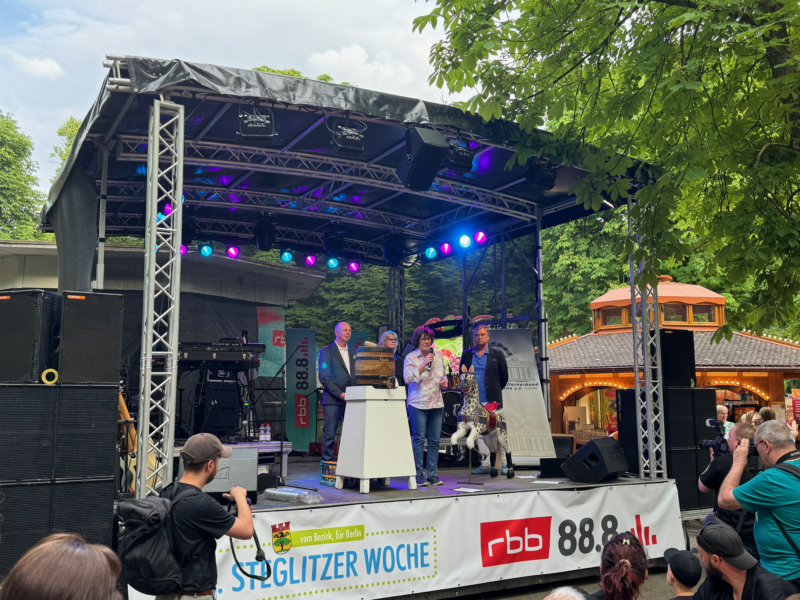 “Auch in diesem Jahr wird es wieder die große Bühne am Pavillon der 72. Steglitzer Woche im Festpark am Teltowkanal (Bäkestraße, zwischen Hindenburgdamm und Ostpreußendamm) geben. Dort wird den interessierten Besucherinnen und Besuchern vom 22. Mai bis zum 07. Juni 2026 ein buntes Programm geboten.